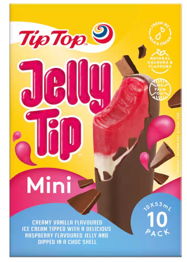 It’s a classic Kiwi ice cream treat, and I bet even if you haven’t had one in years, you can conjur up a taste memory of Tip Top’s Jelly Tip. Go on: think of it now. It brings me a lot of joy to know the Jelly Tip is available in a box of ten mini versions; these are the perfect size for a wee treat on a steamy afternoon. On special they work out at less than $1 each. Nutritional value: marginal. Joy value: high.